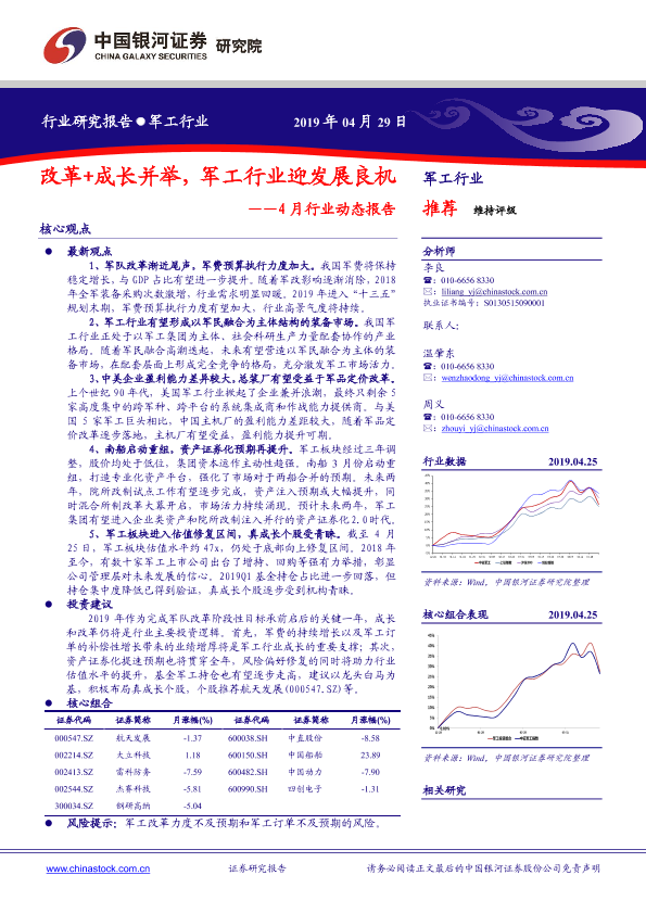 【银河证券】【20190429】4月行业动态报告:改革+成长并举,军工行业迎发展良机-39页
