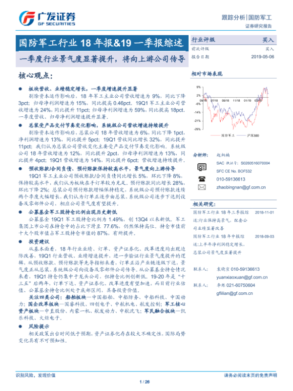 【广发证券】【20190506】国防军工行业18年报&19一季报综述:一季度行业景气度显著提升,将向上游公司传导-26页