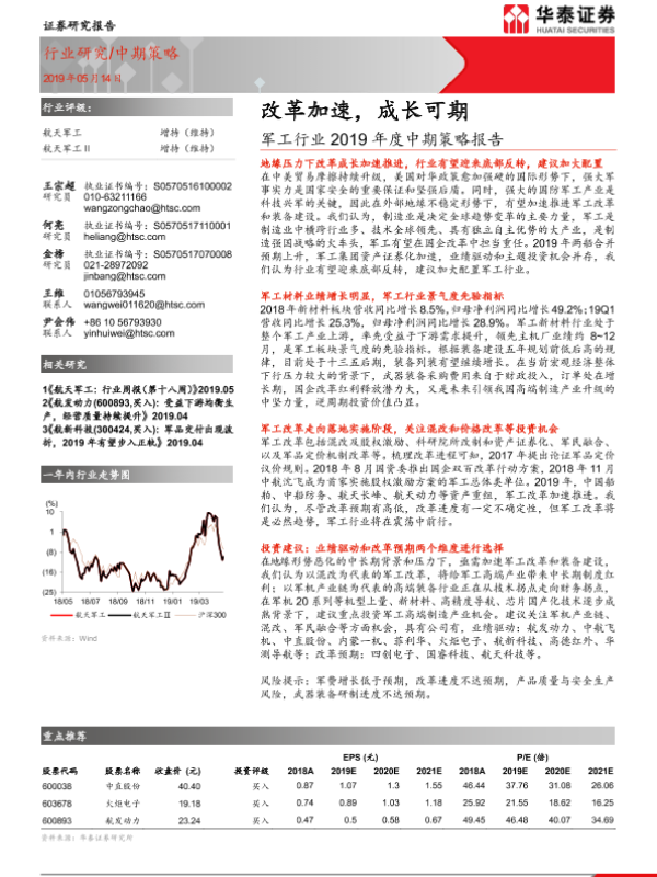 【华泰证券】【20190514】军工行业2019年度中期策略报告:改革加速,成长可期-37页