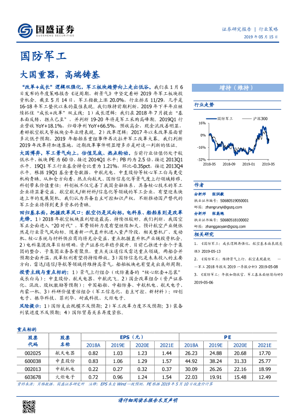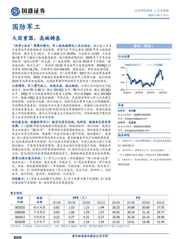 【国盛证券】【20190515】国防军工行业策略:大国重器,高端铸基-64页