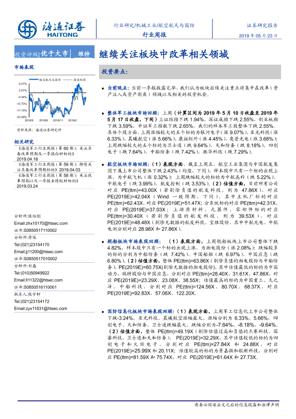 【海通证券】【20190523】20190523-海通证券-航空航天与国防行业周报:继续关注板块中改革相关领域-4页