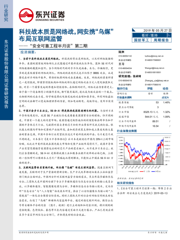 【东兴证券】【20190527】“安全可靠工程半月谈”第二期:科技战本质是网络战,网安携“乌媒”布局互联网监管-30页