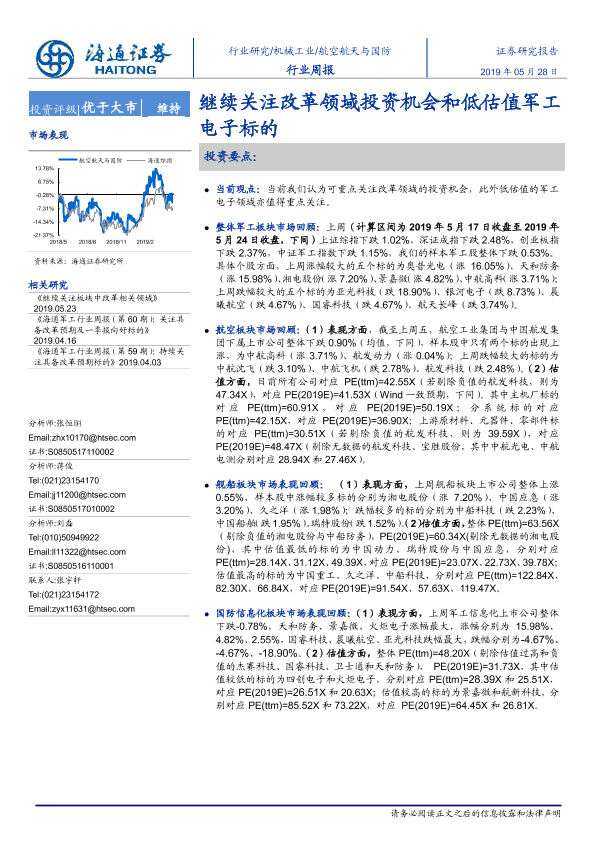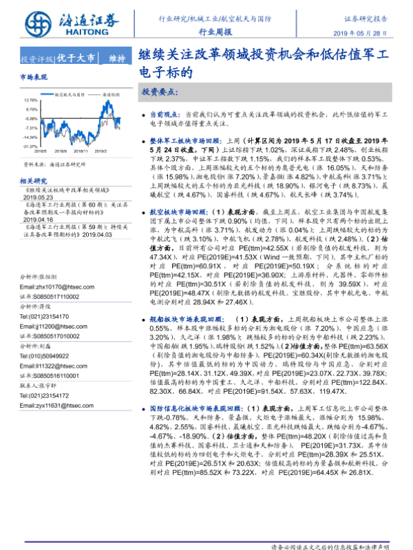 【海通证券】【20190528】20190528-海通证券-航空航天与国防行业周报:继续关注改革领域投资机会和低估值军工电子标的-4页