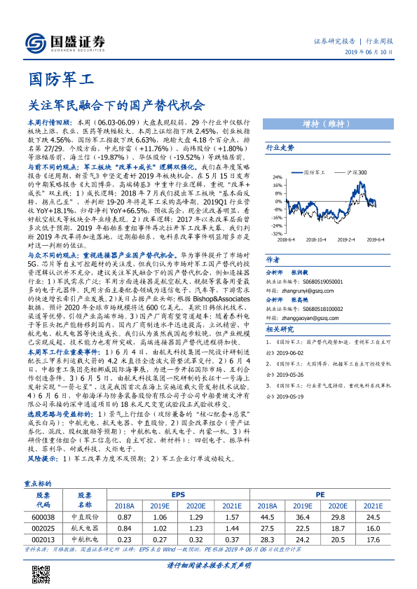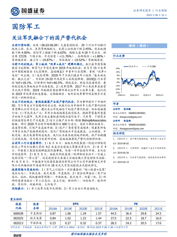 【国盛证券】【20190610】国防军工行业周报:关注军民融合下的国产替代机会-18页