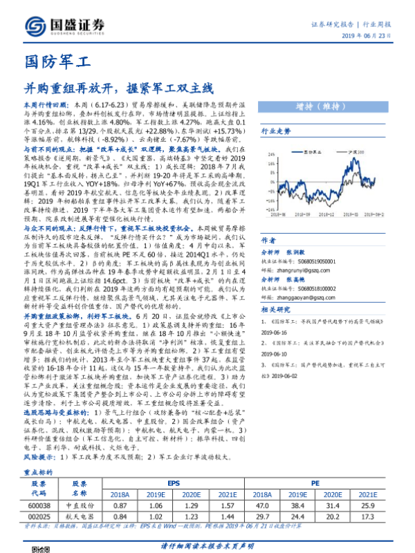 【国盛证券】【20190623】国防军工行业周报:并购重组再放开,握紧军工双主线-18页