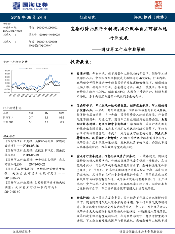 【国海证券】【20190624】20190624-国海证券-国防军工行业中期策略:复杂形势凸显行业特质,国企改革自主可控加速行业发展-27页