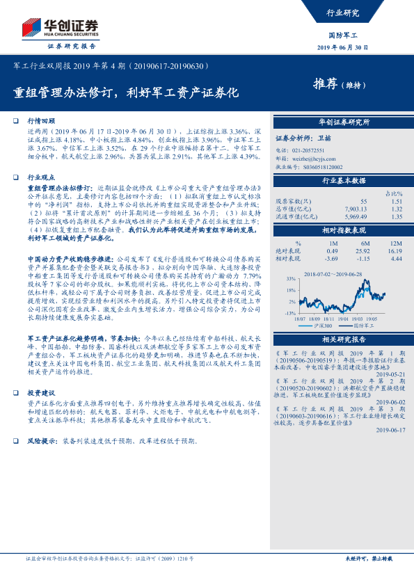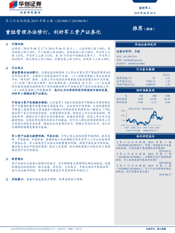 【华创证券】【20190630】军工行业双周报2019年第4期:重组管理办法修订,利好军工资产证券化-21页