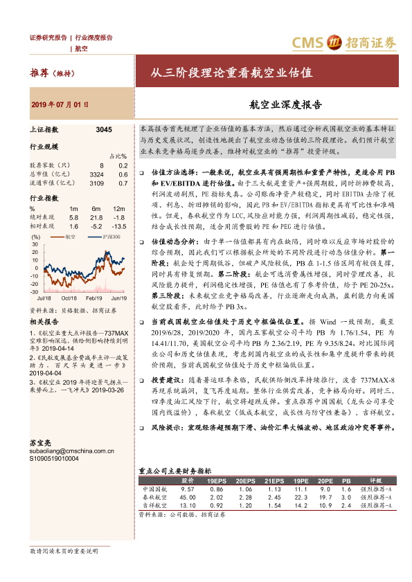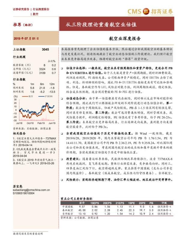 三阶段理论 估值分析 周期性行业 投资评级 航空业