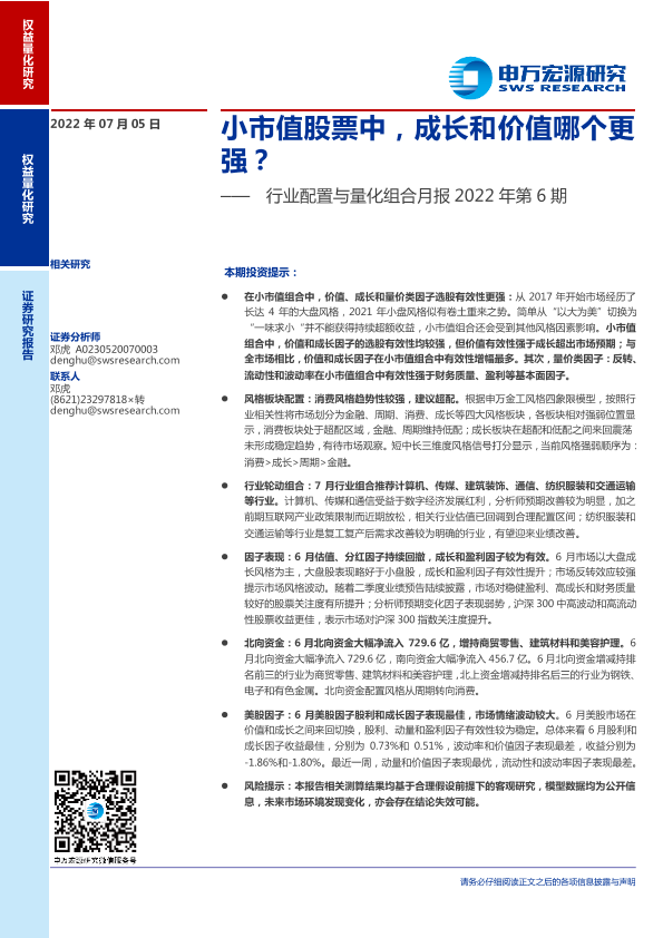 【申万宏源】【20220705】行业配置与量化组合月报2022年第6期:小市值股票中,成长和价值哪个更强?-20页