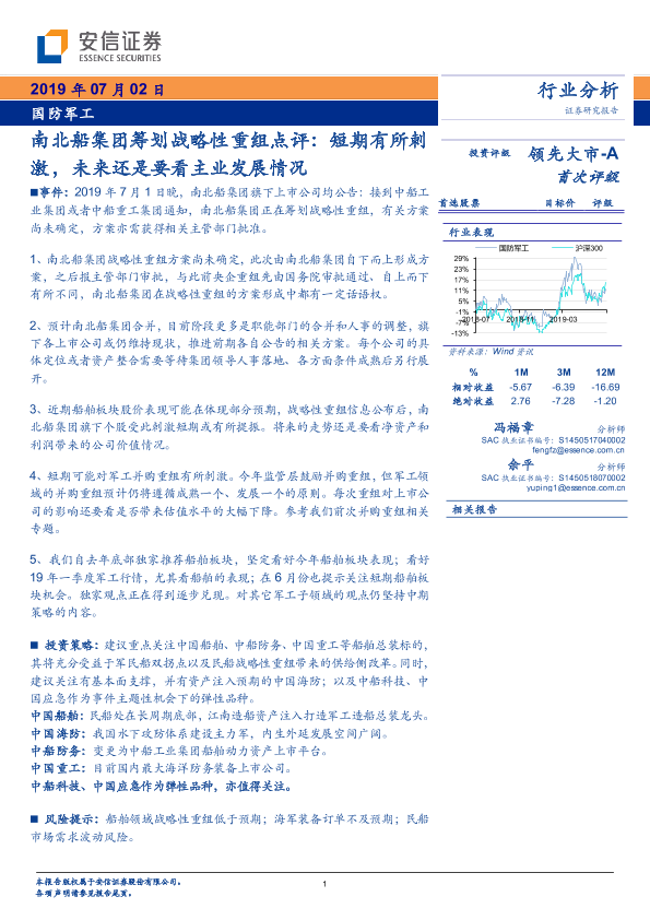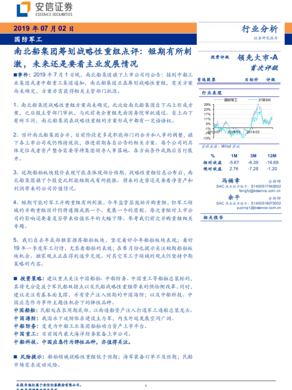 【安信证券】【20190702】20190702-安信证券-国防军工行业分析:南北船集团筹划战略性重组点评:短期有所刺激,未来还是要看主业发展情况-15页