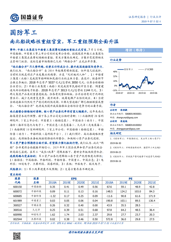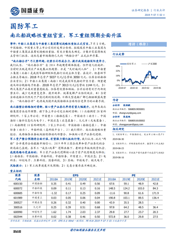 【国盛证券】【20190702】国防军工:南北船战略性重组官宣,军工重组预期全面升温-4页