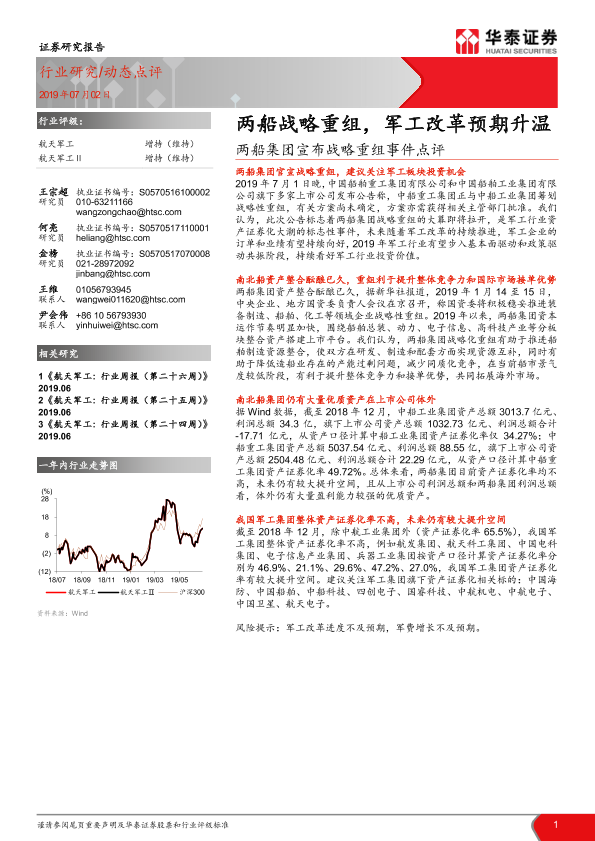 【华泰证券】【20190702】航天军工行业动态点评:两船集团宣布战略重组事件点评-两船战略重组,军工改革预期升温-2页