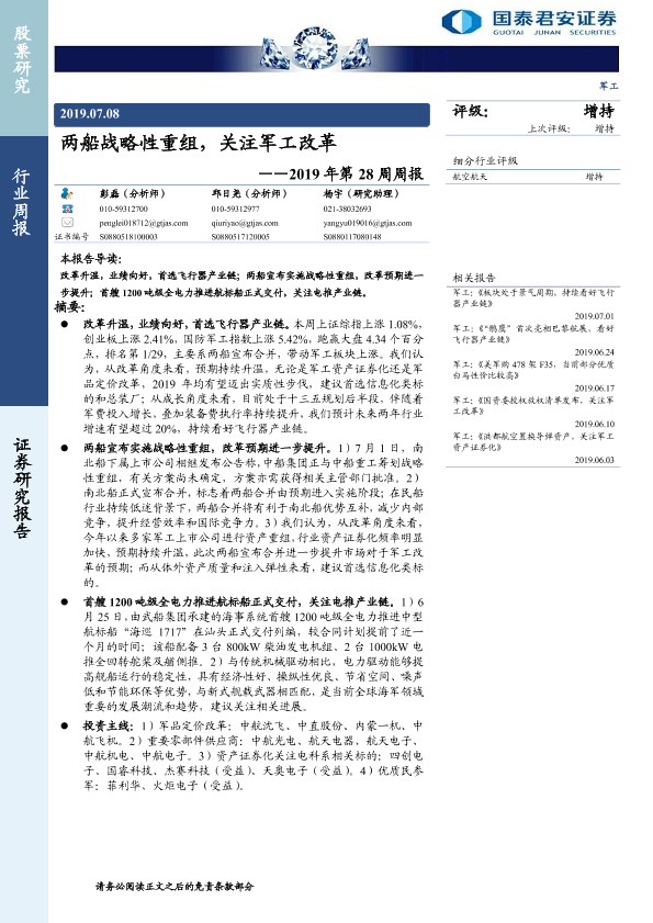 【国泰君安证券】【20190708】2019年第28周周报:两船战略性重组,关注军工改革-11页
