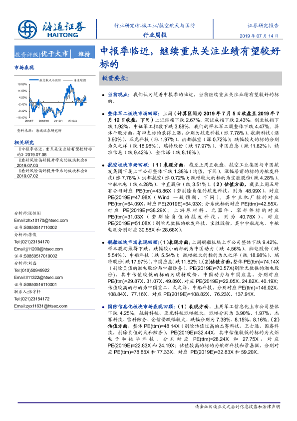 【海通证券】【20190714】20190714-海通证券-航空航天与国防行业周报:中报季临近,继续重点关注业绩有望较好标的-4页