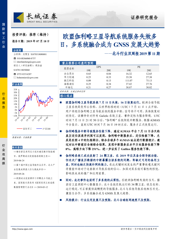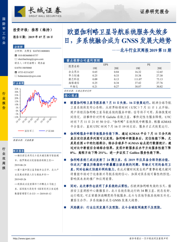【长城证券】【20190718】北斗行业双周报2019第11期:欧盟伽利略卫星导航系统服务失效多日,多系统融合成为GNSS发展大趋势-13页