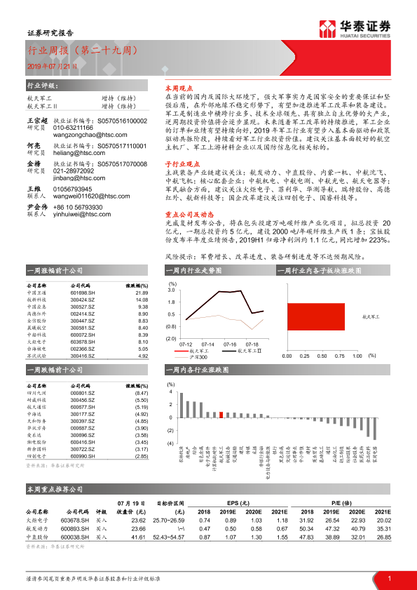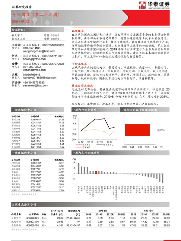 【华泰证券】【20190721】20190721-华泰证券-航天军工行业周报(第二十九周)-14页
