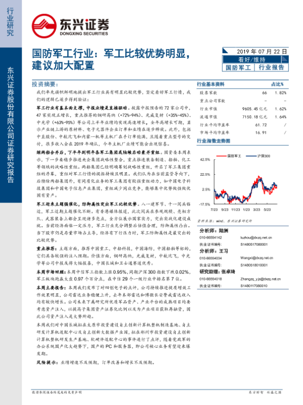 【东兴证券】【20190722】国防军工行业:军工比较优势明显,建议加大配置-10页