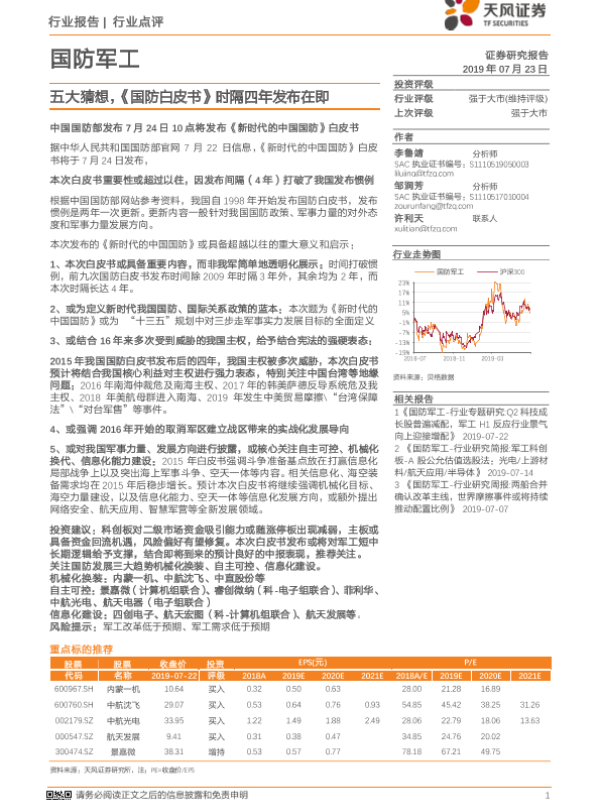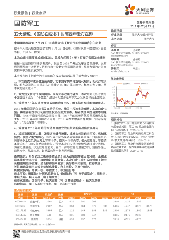 【天风证券】【20190723】国防军工行业点评:五大猜想,《国防白皮书》时隔四年发布在即-2页
