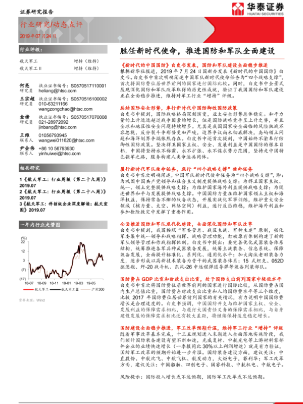 【华泰证券】【20190724】航天军工动态点评:胜任新时代使命,推进国防和军队全面建设-2页