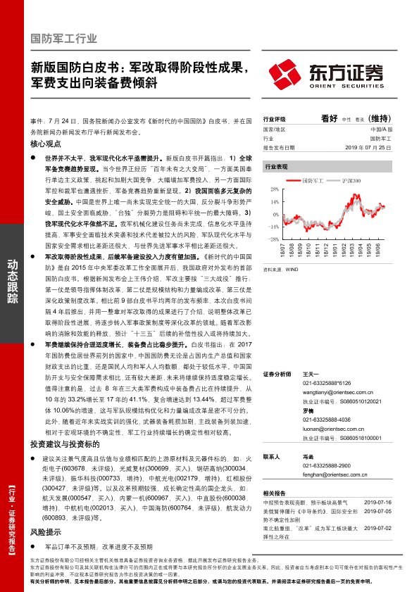 【东方证券】【20190725】新版国防白皮书:军改取得阶段性成果,军费支出向装备费倾斜-3页