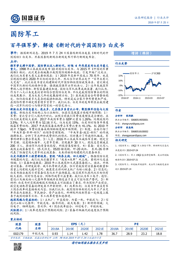 【国盛证券】【20190725】国防军工行业点评:百年强军梦,解读《新时代的中国国防》白皮书-11页