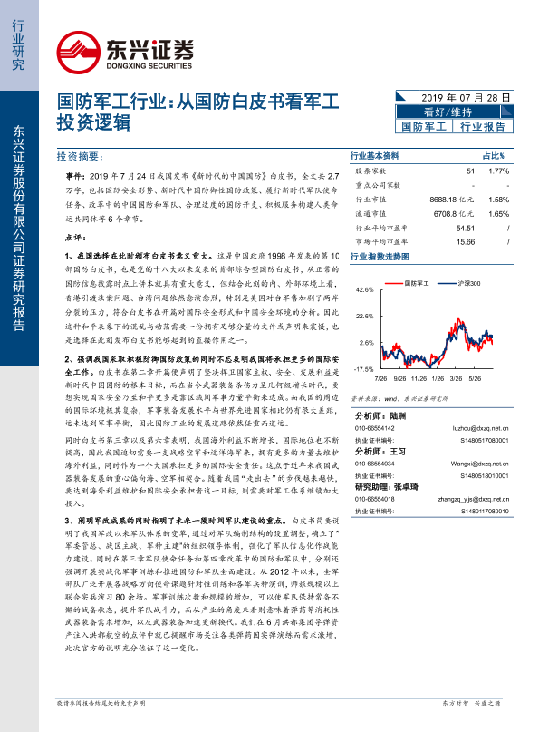 【东兴证券】【20190728】国防军工行业:从国防白皮书看军工投资逻辑-6页
