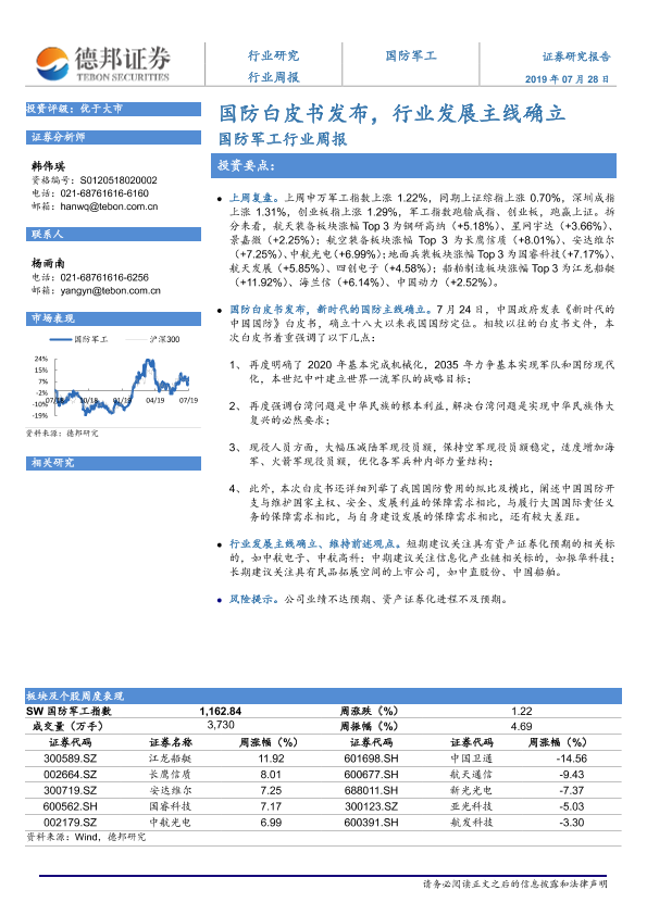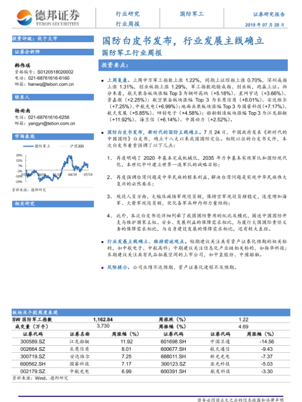 【德邦证券】【20190728】20190728-德邦证券-国防军工行业周报:国防白皮书发布,行业发展主线确立-5页