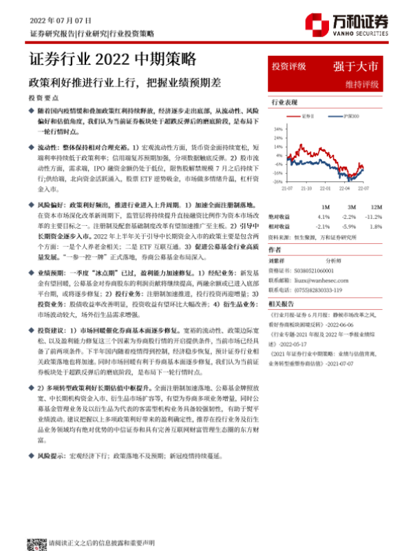 【万和证券】【20220707】证券行业2022中期策略:政策利好推进行业上行,把握业绩预期差-18页