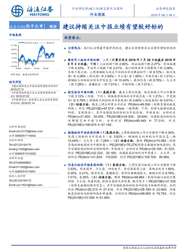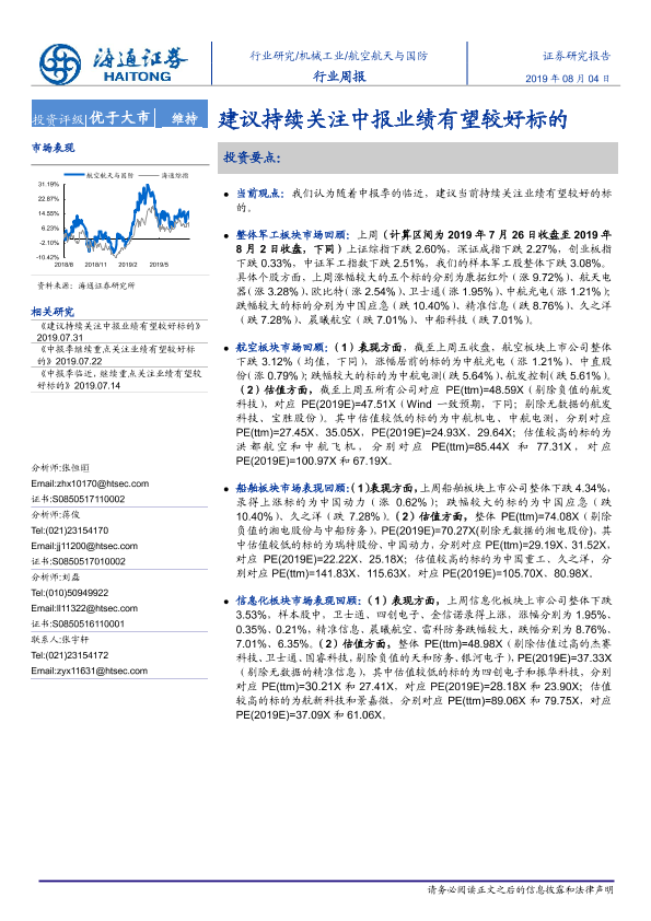 【海通证券】【20190804】20190804-海通证券-航空航天与国防行业周报:建议持续关注中报业绩有望较好标的-4页