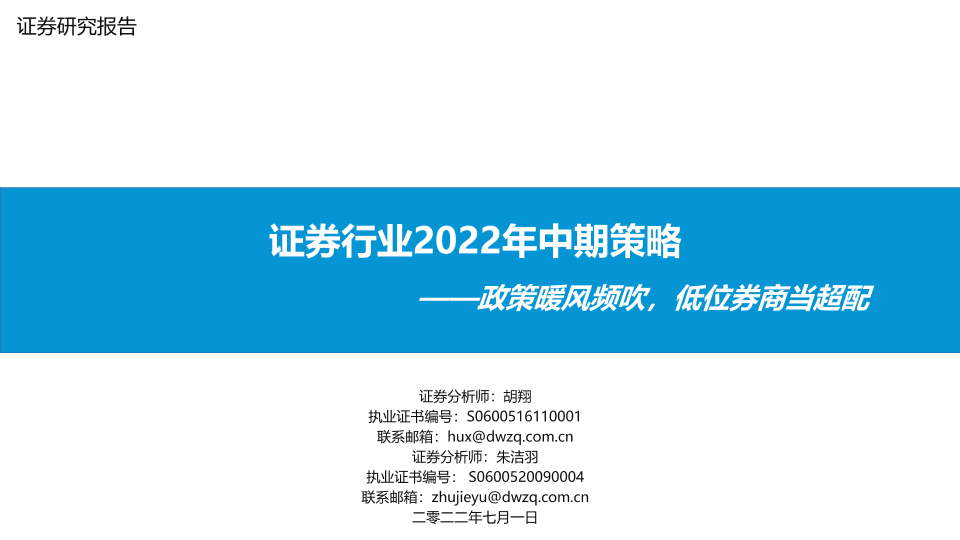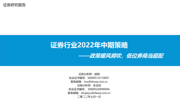 【东吴证券】【20220701】证券行业2022年中期策略:政策暖风频吹,低位券商当超配-21页