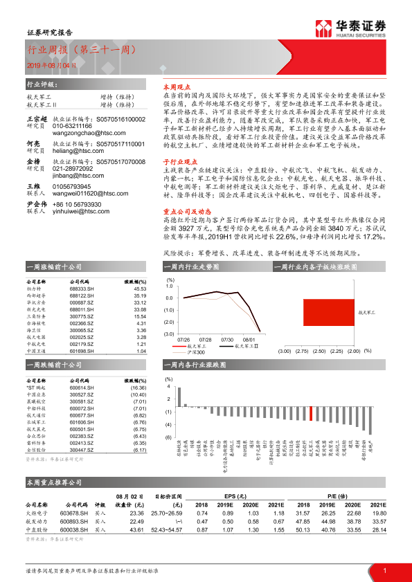 【华泰证券】【20190804】20190804-华泰证券-航天军工行业周报(第三十一周)-13页