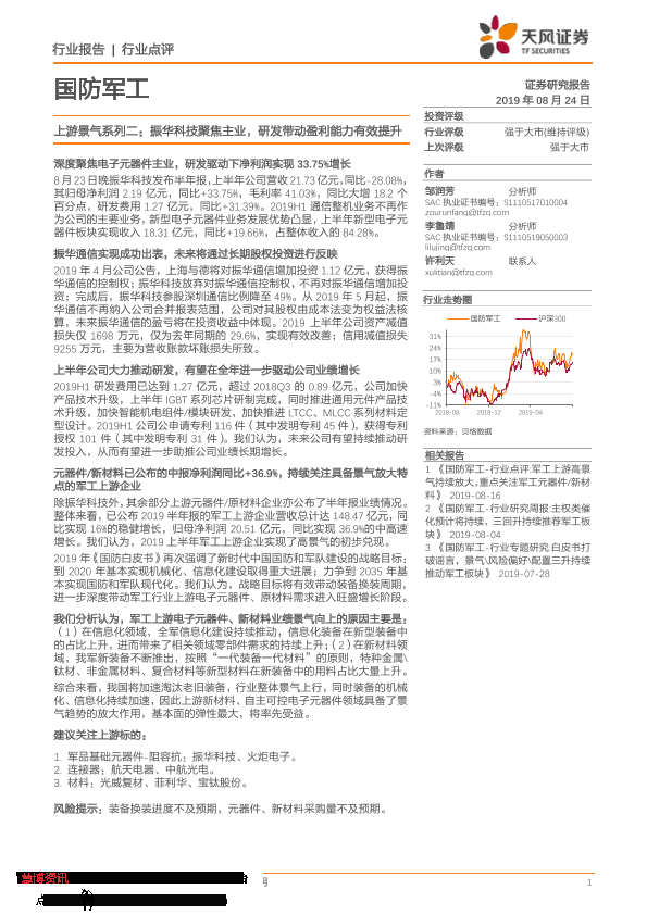 【天风证券】【20190824】国防军工:上游景气系列二:振华科技聚焦主业,研发带动盈利能力有效提升-3页