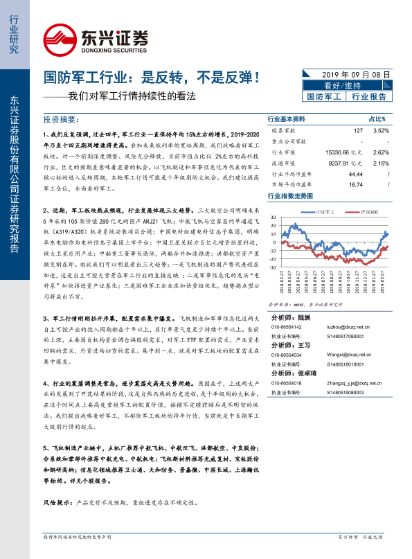 【东兴证券】【20190908】我们对军工行情持续性的看法:国防军工行业:是反转,不是反弹!-10页