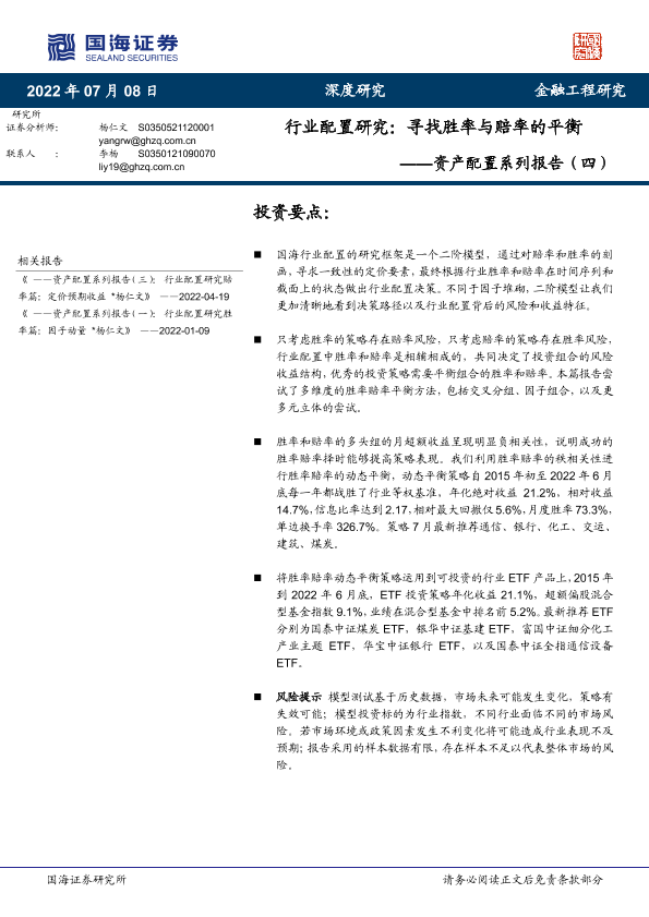 【国海证券】【20220708】资产配置系列报告(四):行业配置研究,寻找胜率与赔率的平衡-29页