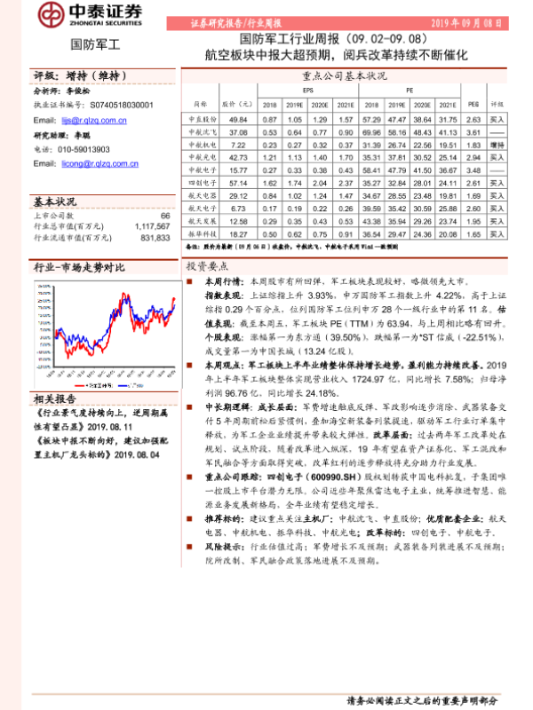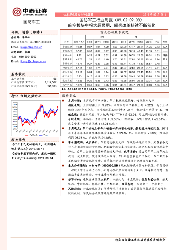 【中泰证券】【20190908】20190908-中泰证券-国防军工行业周报:航空板块中报大超预期,阅兵改革持续不断催化-13页