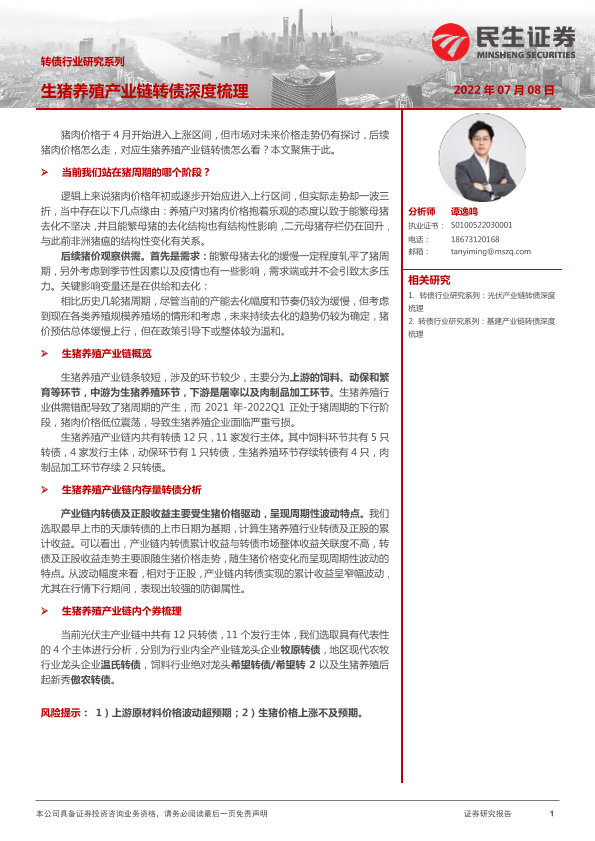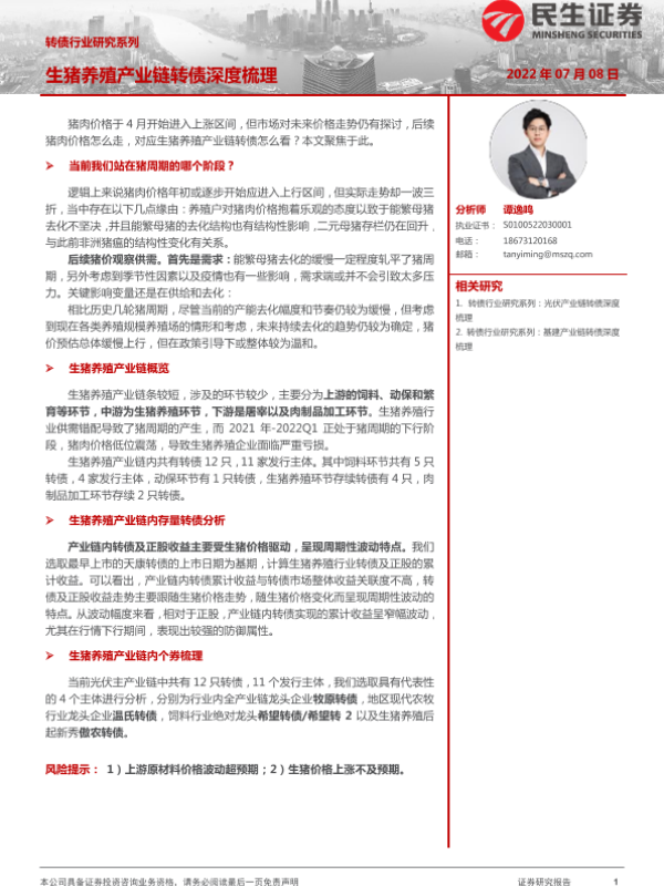 【民生证券】【20220708】转债行业研究系列:生猪养殖产业链转债深度梳理-29页