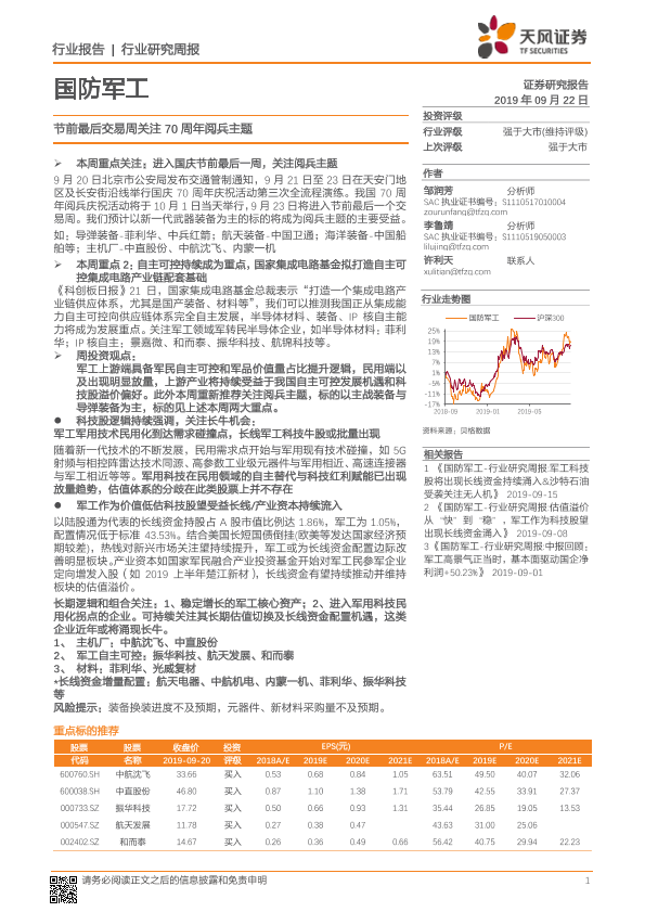 【天风证券】【20190922】国防军工行业研究周报:节前最后交易周关注70周年阅兵主题-3页
