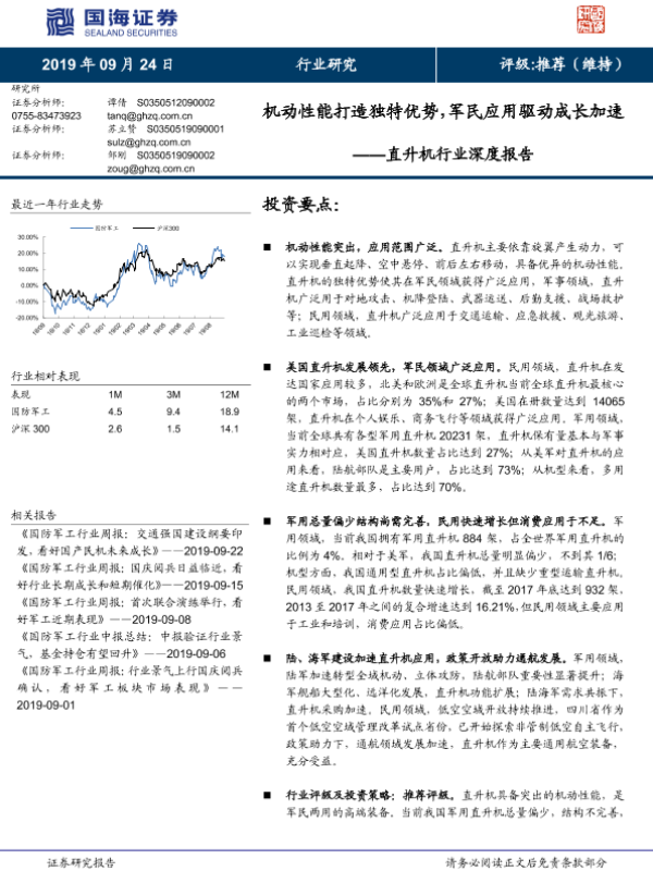 【国海证券】【20190924】机动性能打造独特优势,军民应用驱动成长加速——直升机行业深度报告-28页