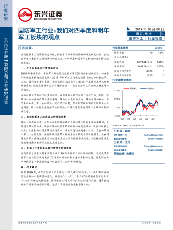 【东兴证券】【20191008】国防军工行业:我们对四季度和明年军工板块的观点-11页