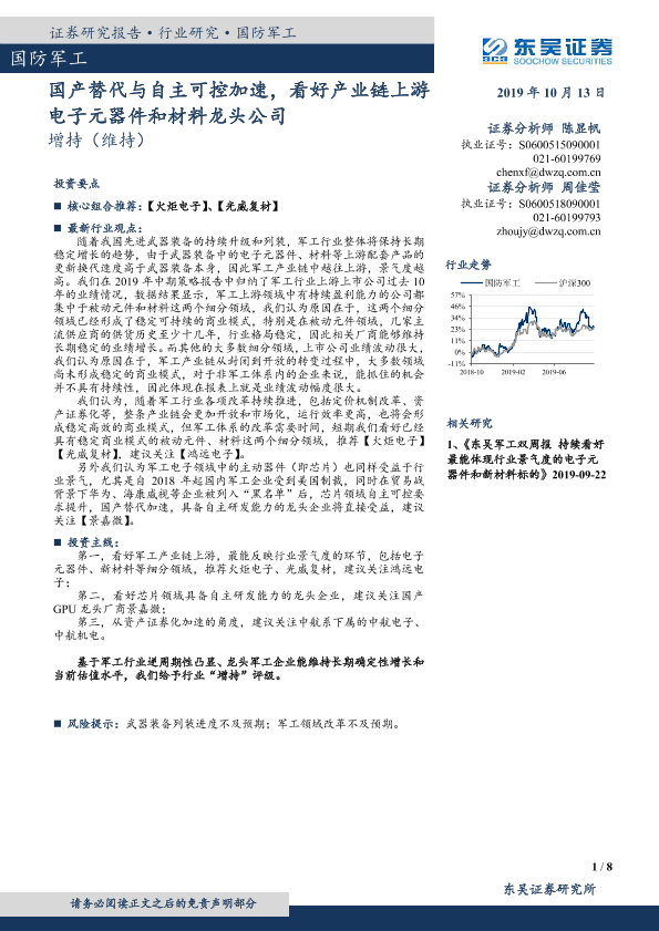 【东吴证券】【20191013】国防军工:国产替代与自主可控加速,看好产业链上游电子元器件和材料龙头公司-8页