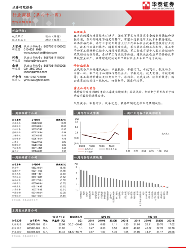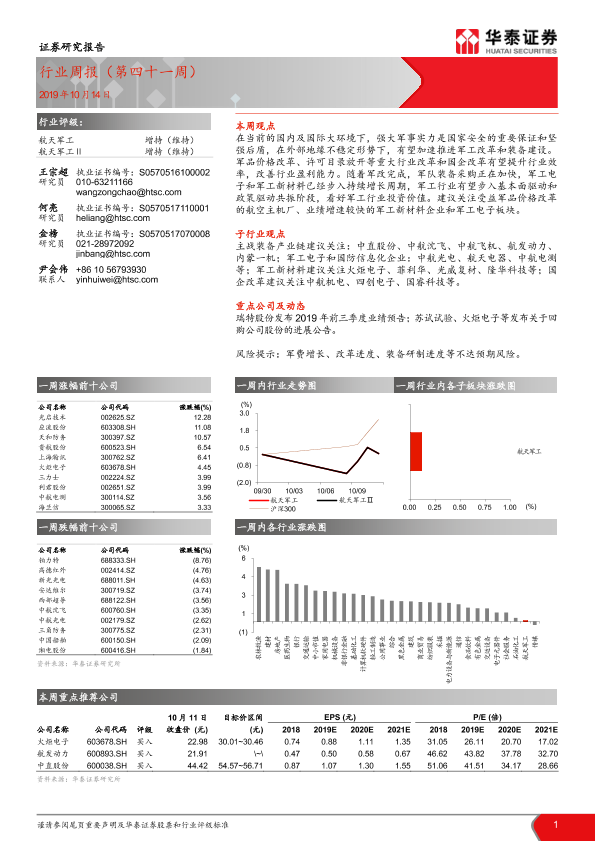 【华泰证券】【20191014】20191014-华泰证券-航天军工行业周报(第四十一周)-13页