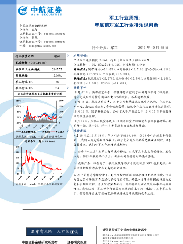 【中航证券】【20191018】军工行业周报:年底前对军工行业持乐观判断-3页