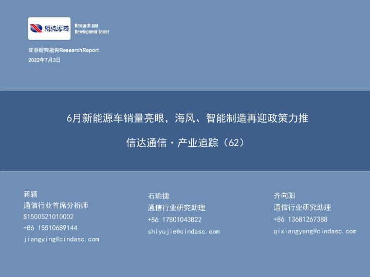 【信达证券】【20220703】通信行业·产业追踪(62):6月新能源车销量亮眼,海风、智能制造再迎政策力推-37页