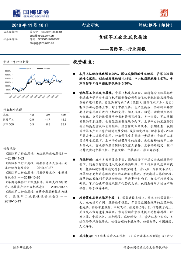 【国海证券】【20191110】国防军工行业周报:重视军工企业成长属性-12页