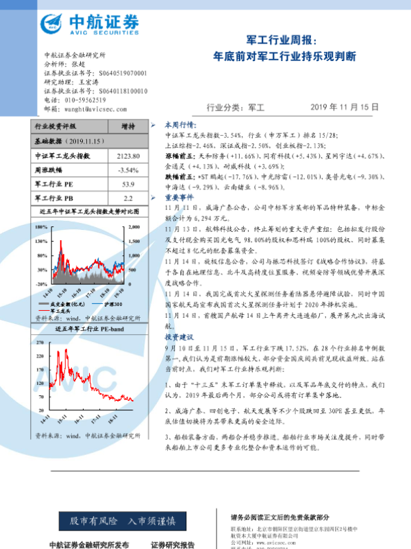 【中航证券】【20191115】军工行业周报:年底前对军工行业持乐观判断-3页