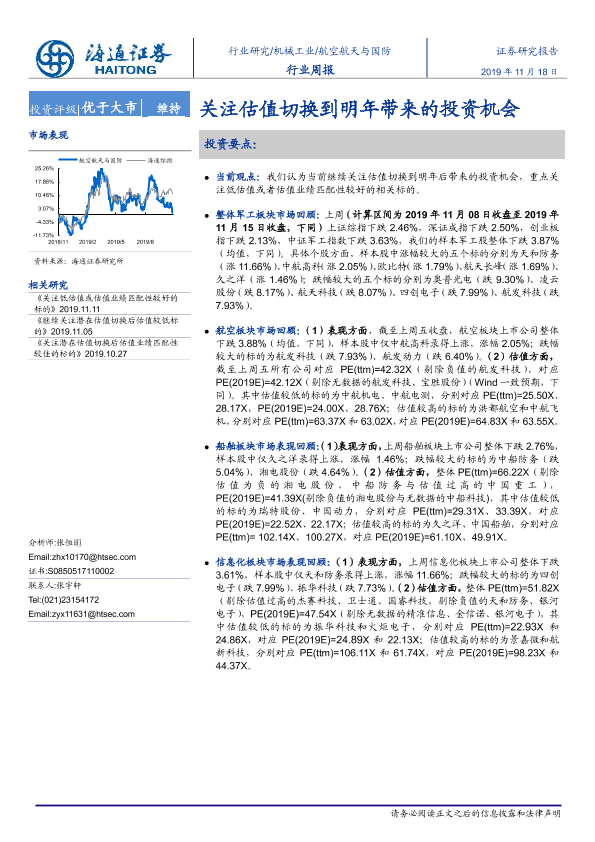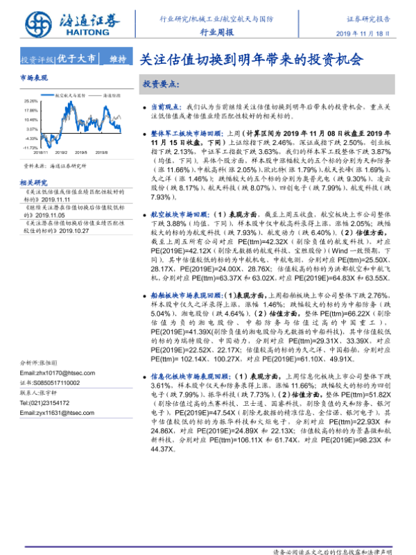 【海通证券】【20191118】20191118-海通证券-航空航天与国防行业周报:关注估值切换到明年带来的投资机会-4页