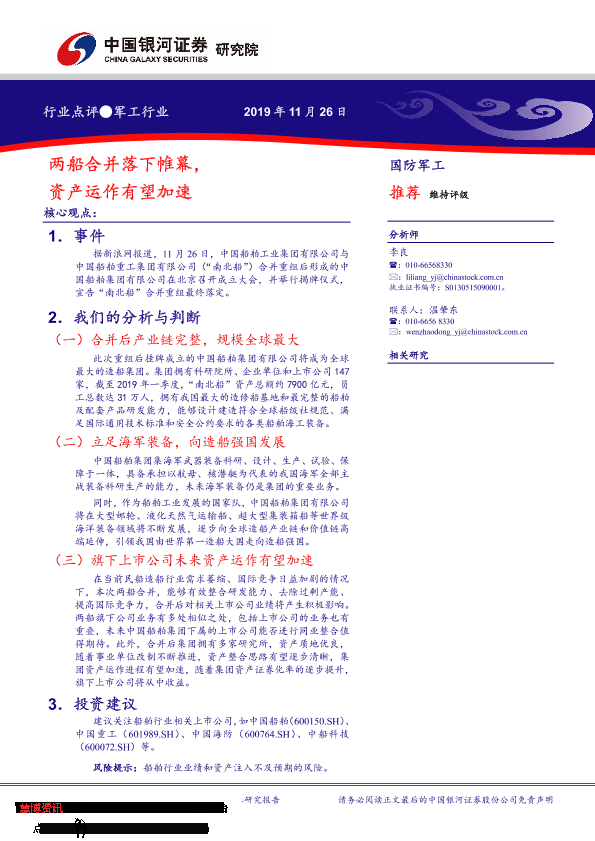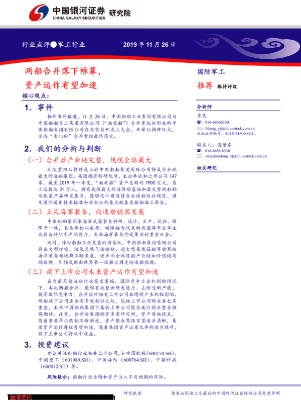 【银河证券】【20191126】军工行业点评:两船合并落下帷幕,资产运作有望加速-3页