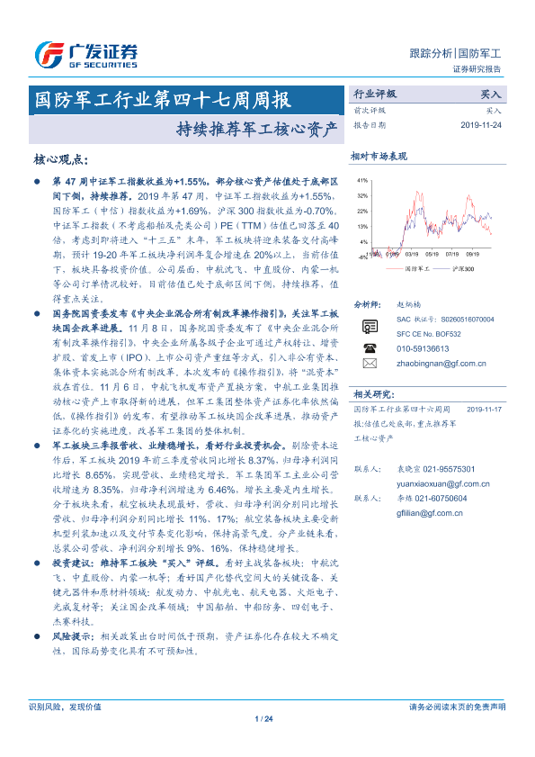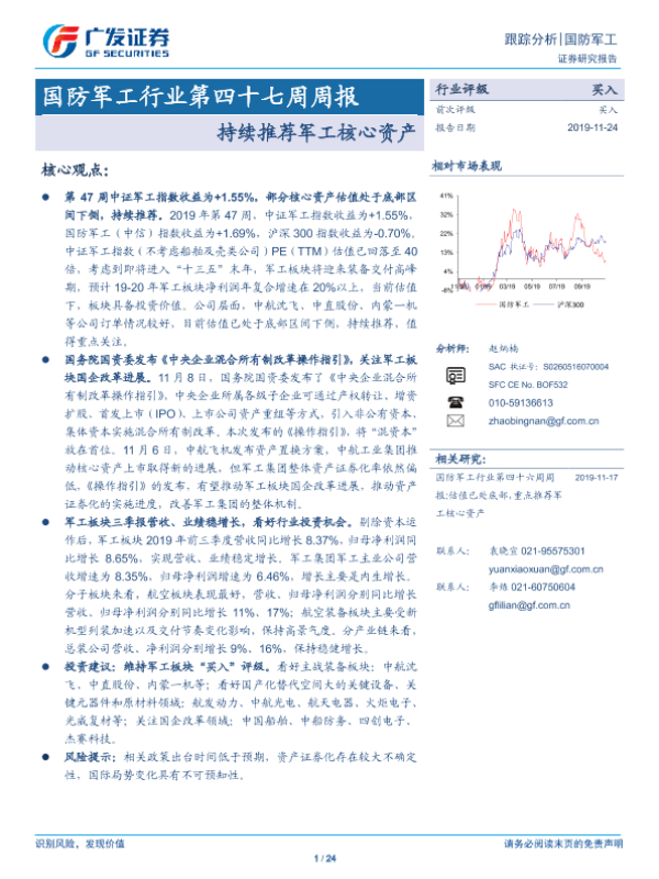 【广发证券】【20191124】国防军工行业第四十七周周报:持续推荐军工核心资产-24页