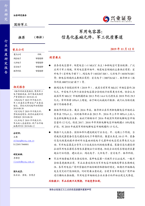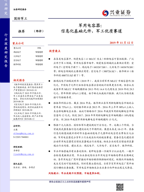 【兴业证券】【20191112】军用电容器:信息化基础元件,军工优质赛道-45页