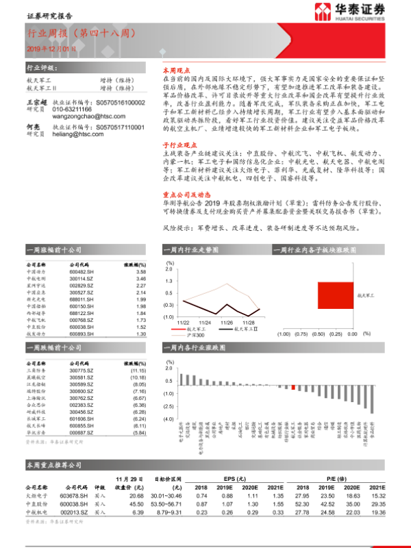 【华泰证券】【20191201】20191201-华泰证券-航天军工行业周报(第四十八周)-13页